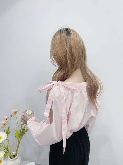 M2503 現貨・正韓🇰🇷春日浪漫 兩穿抽皺綁帶蝴蝶結上衣 粉/白