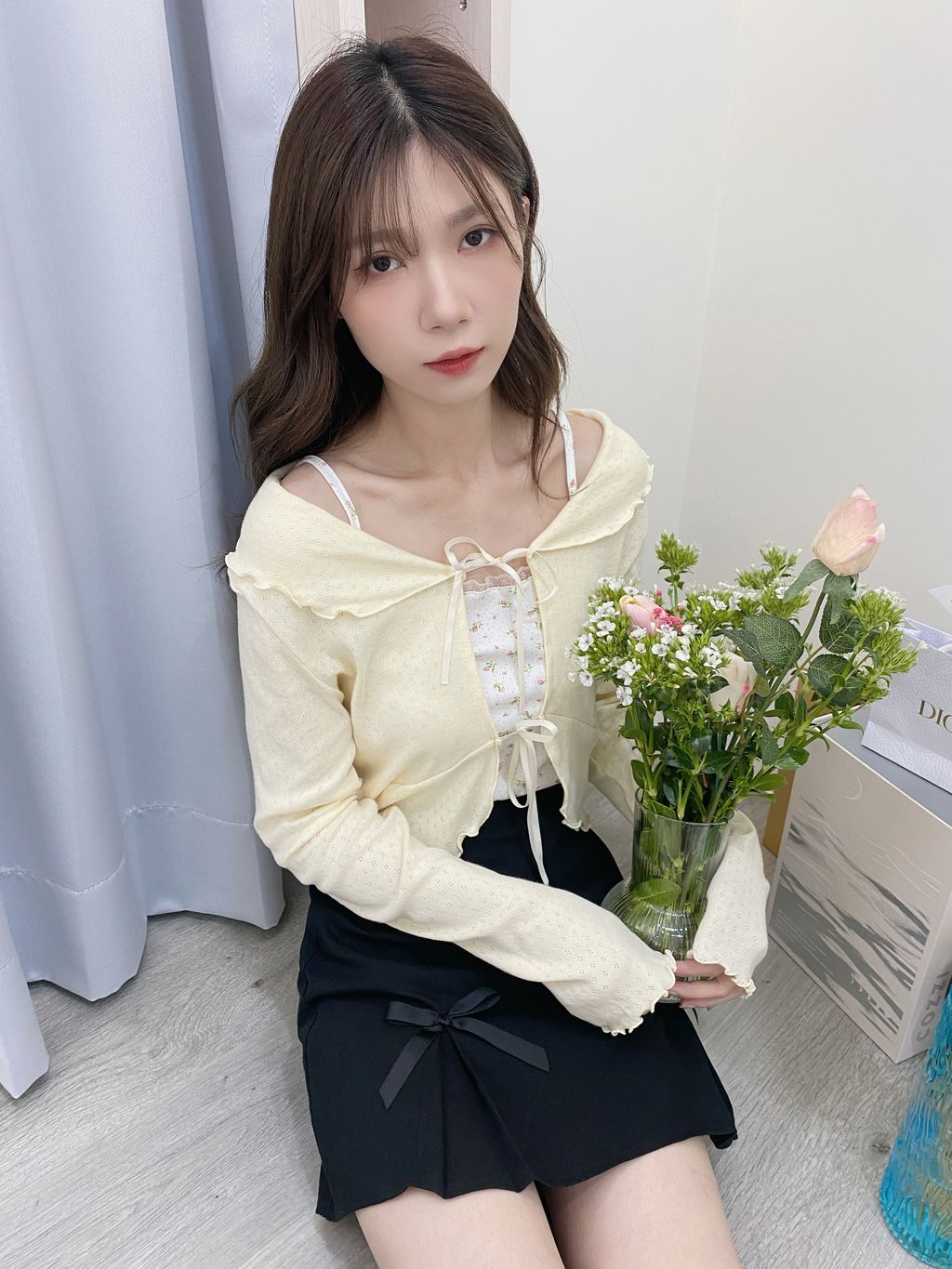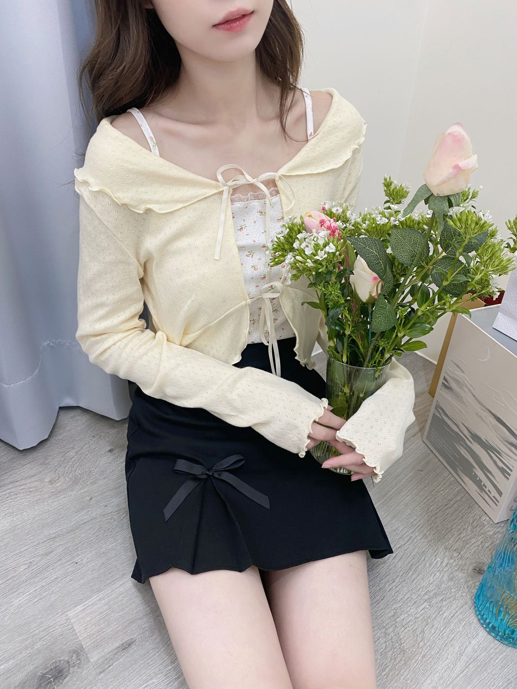 M122 現貨・熱銷安可破百♡新色New正韓🇰🇷初戀悸動 綁帶蝴蝶結罩衫 黃/粉/白/藍/黑/灰