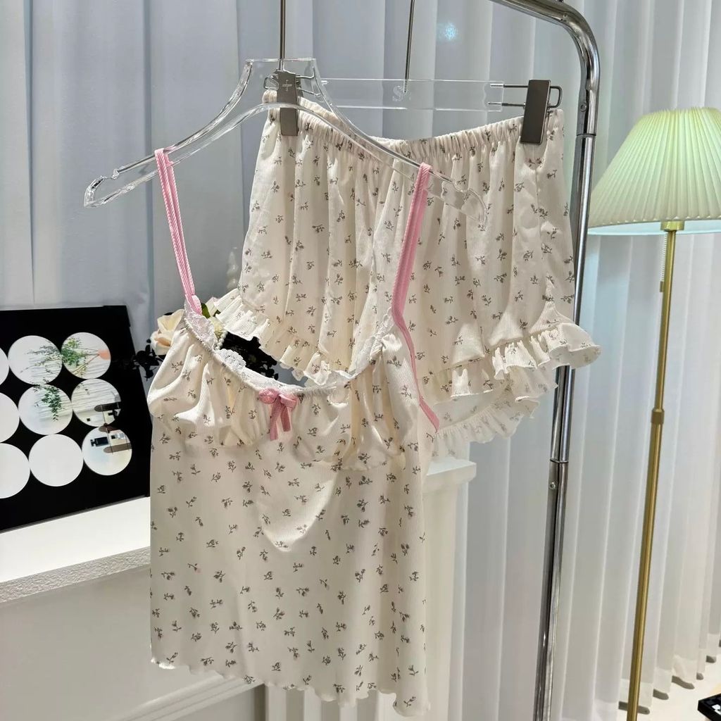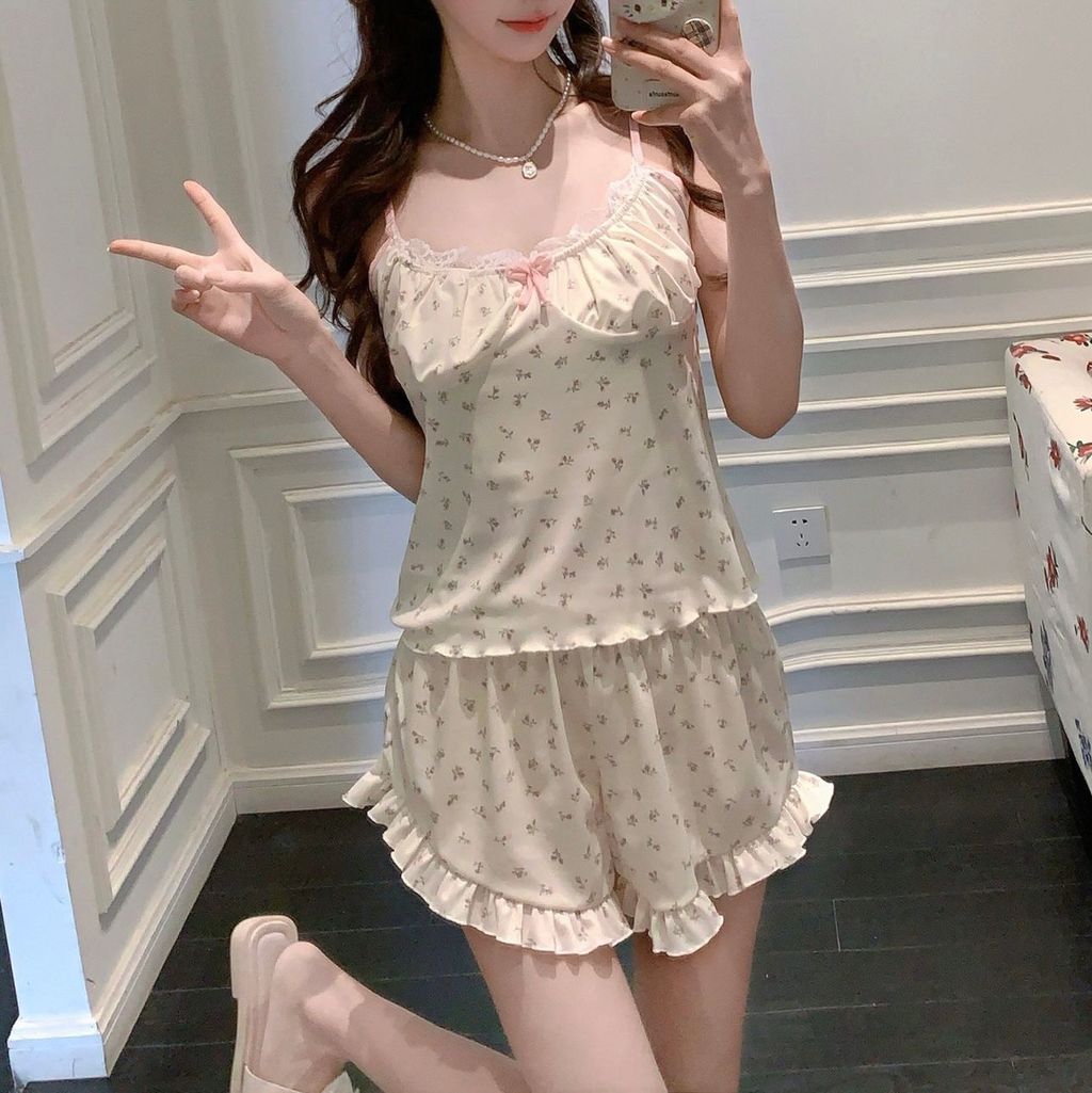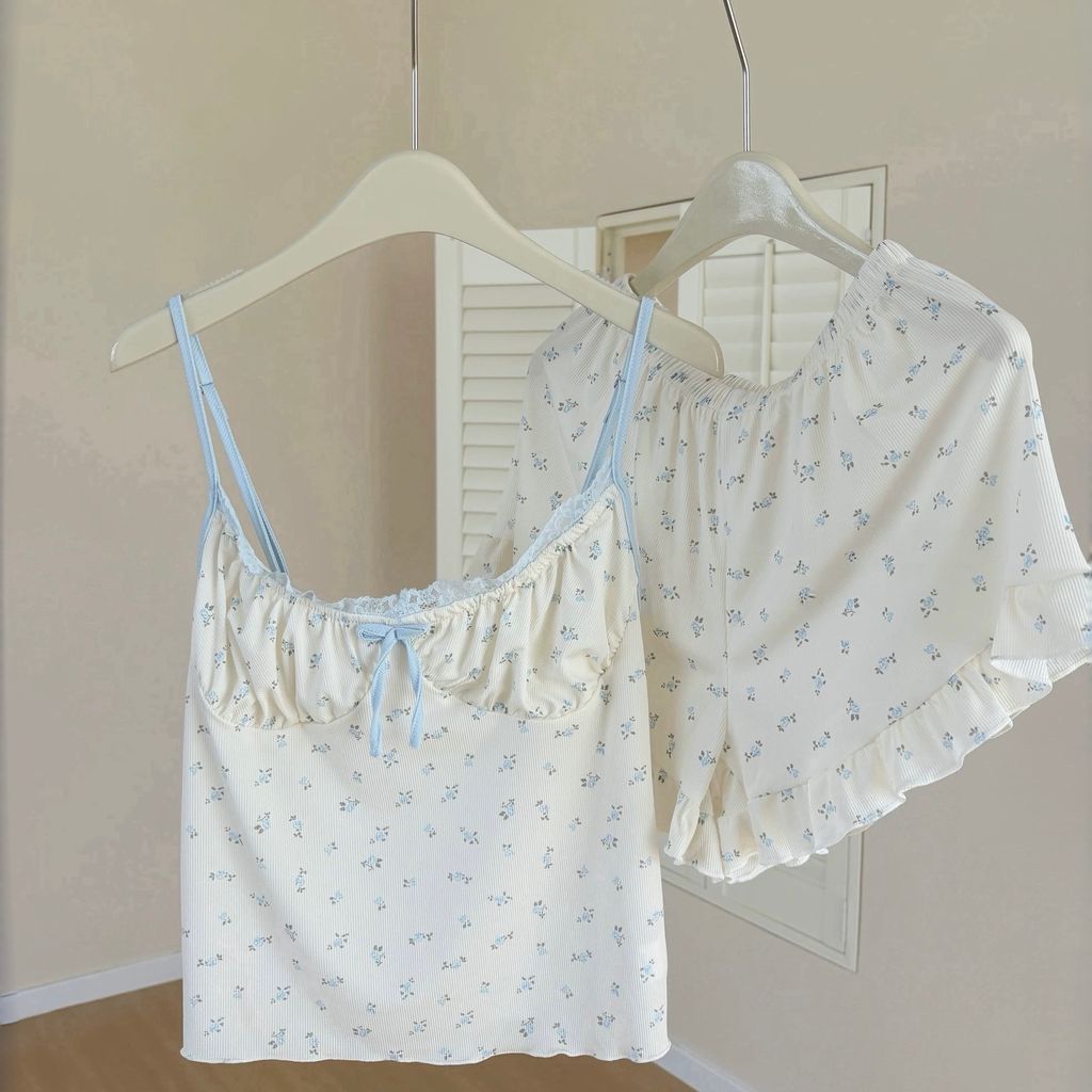 D271 奶油碎花 法式莫代爾睡衣套裝