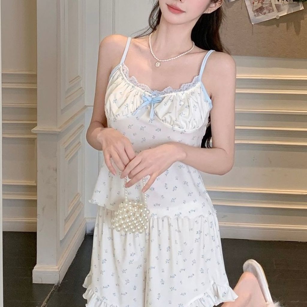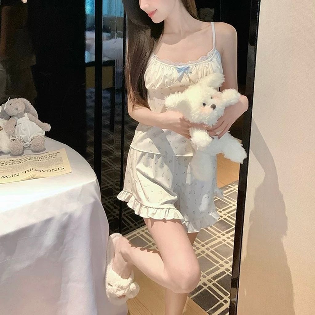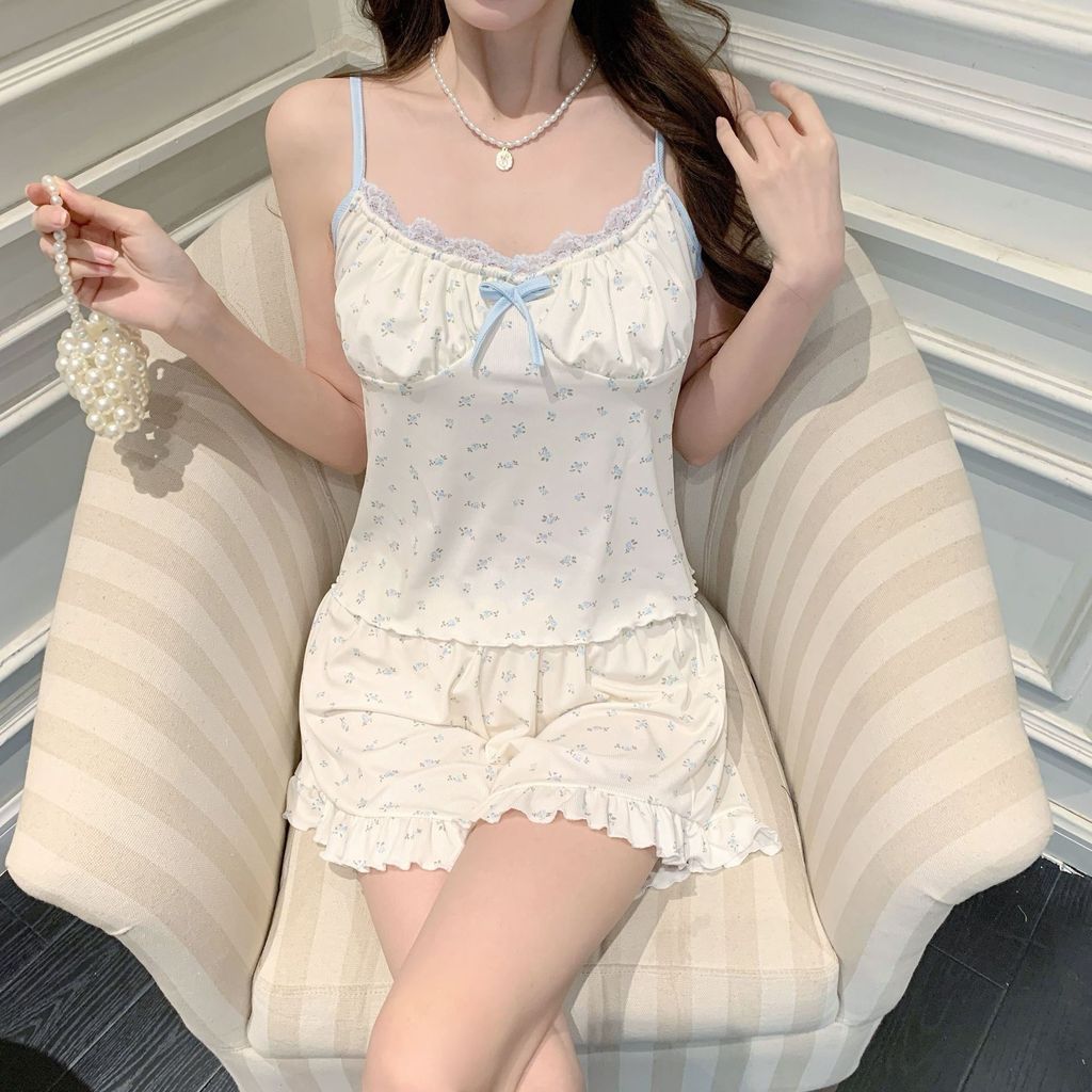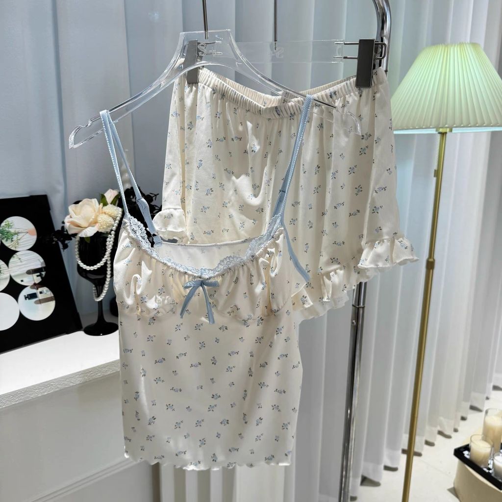 D271 奶油碎花 法式莫代爾睡衣套裝