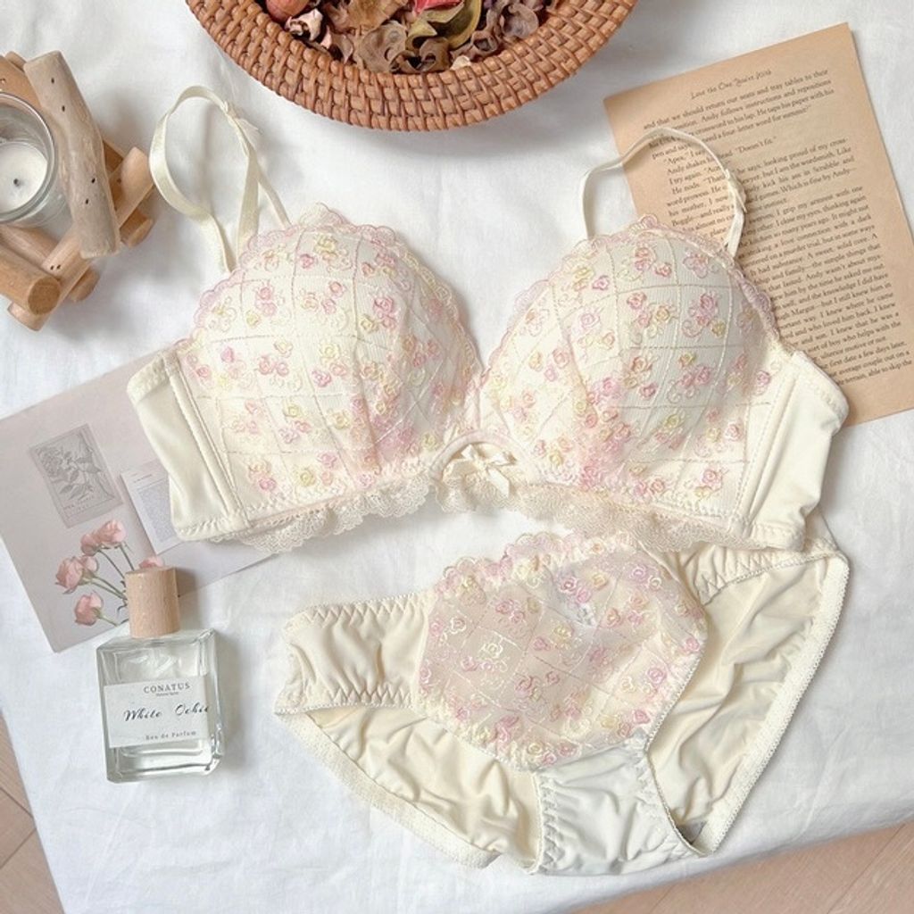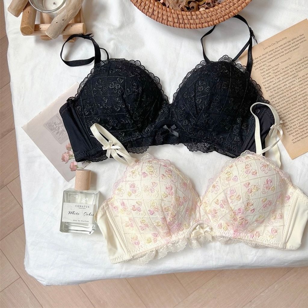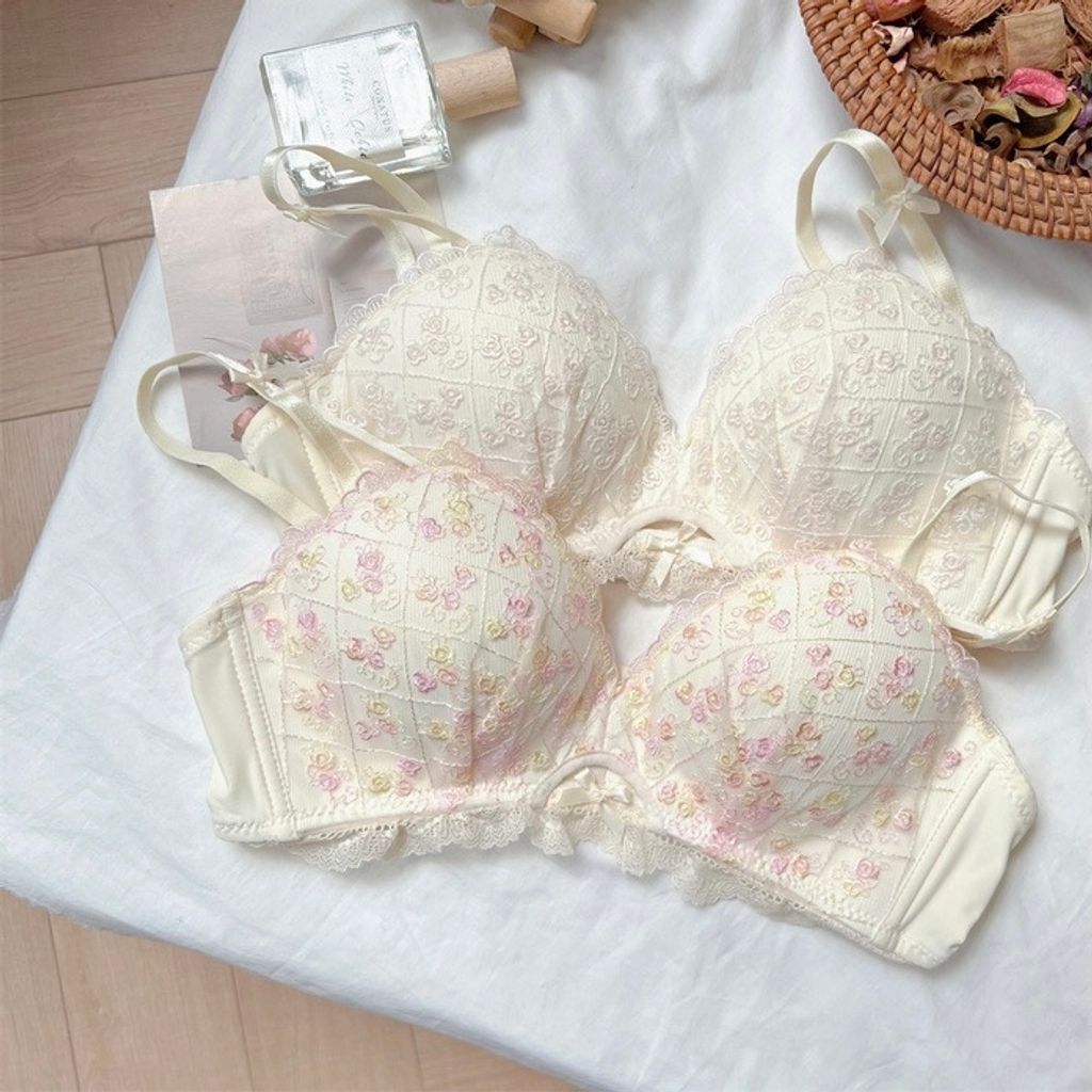 N2405 白雪花季 法式無鋼圈內衣(贈送內褲)