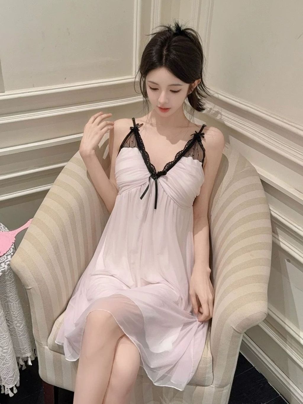 M2531 熱銷破百款♡ ིྀ仙女の收藏 法式紗質睡衣裙