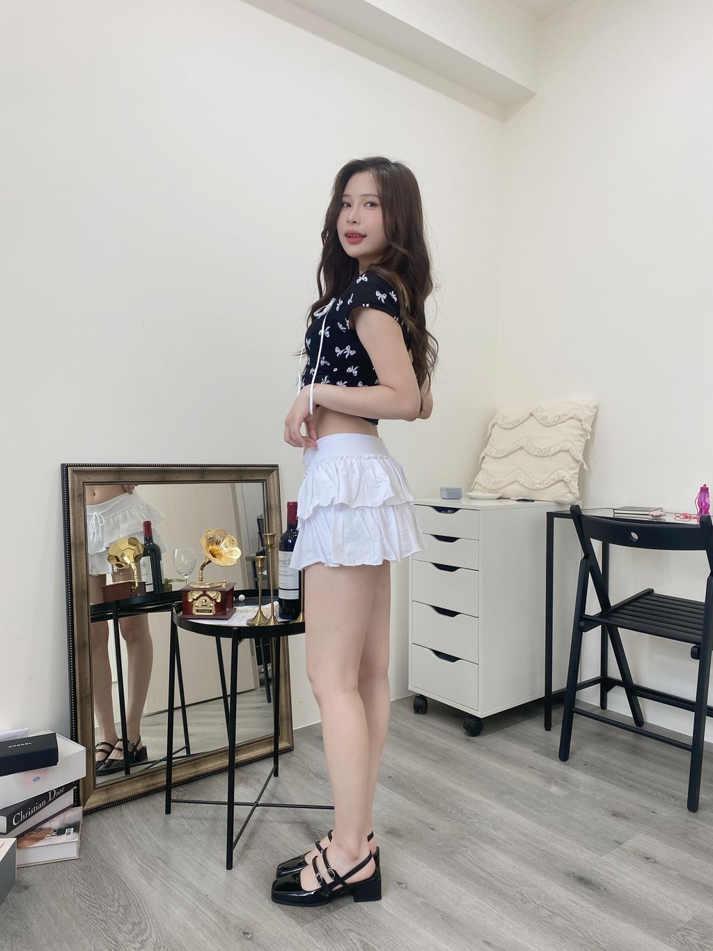 C02 現貨・正韓♡ ིྀ 可愛悸動 滿版蝴蝶結緞帶綁帶上衣 黑/白/粉