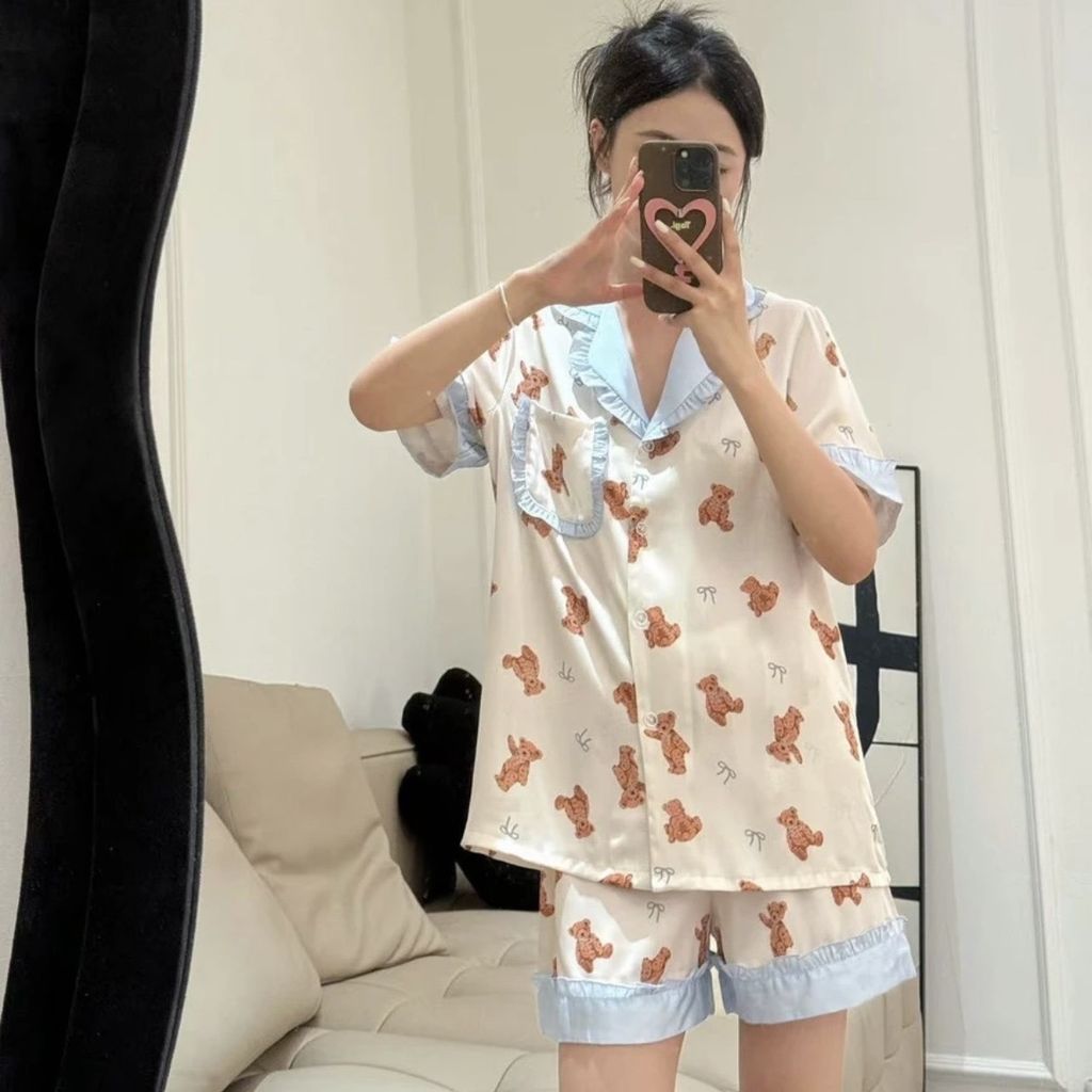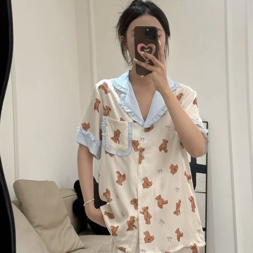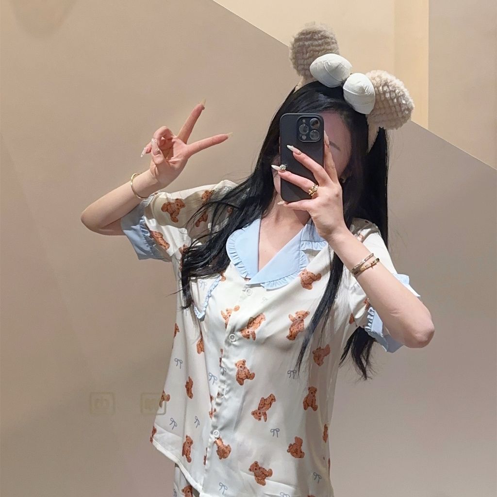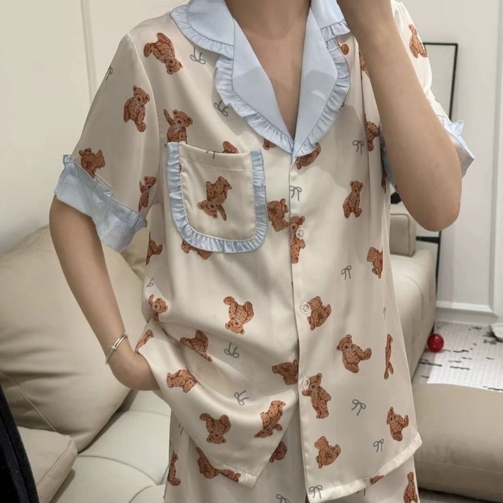 A83 泰迪熊熊 法式冰絲睡衣套裝