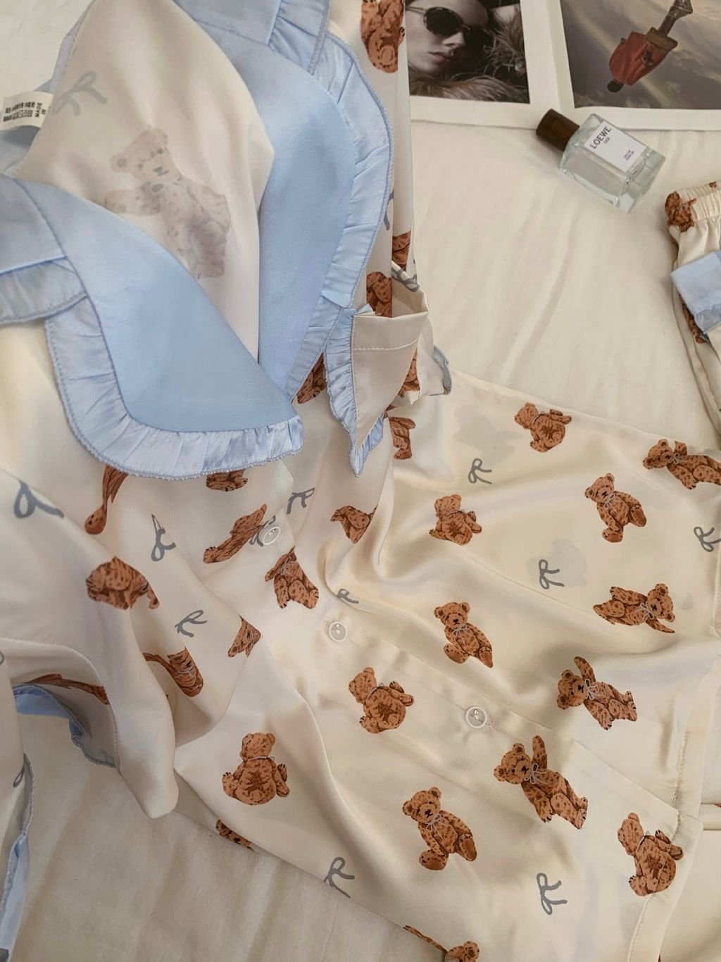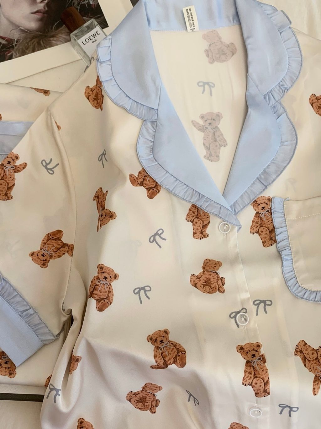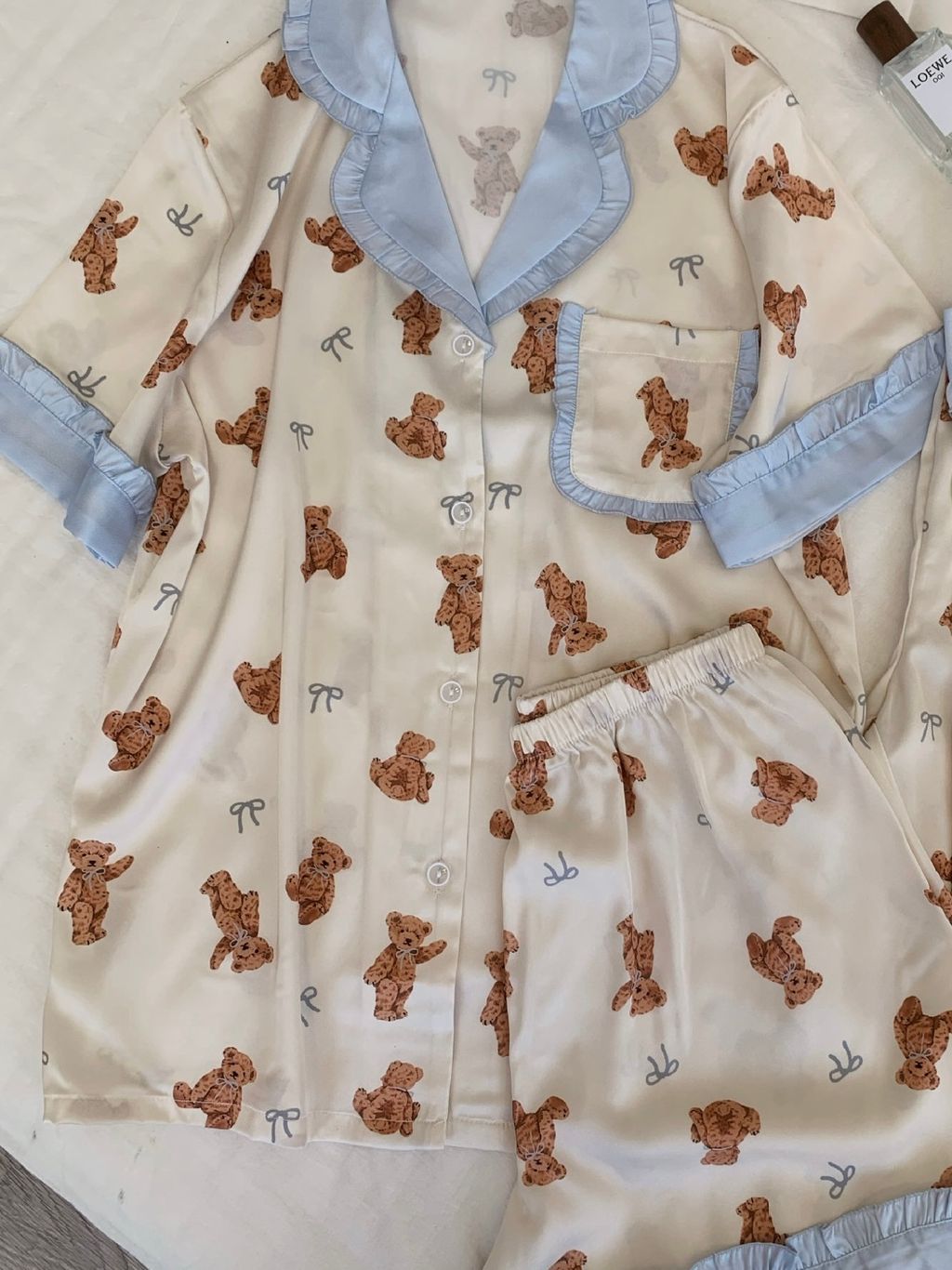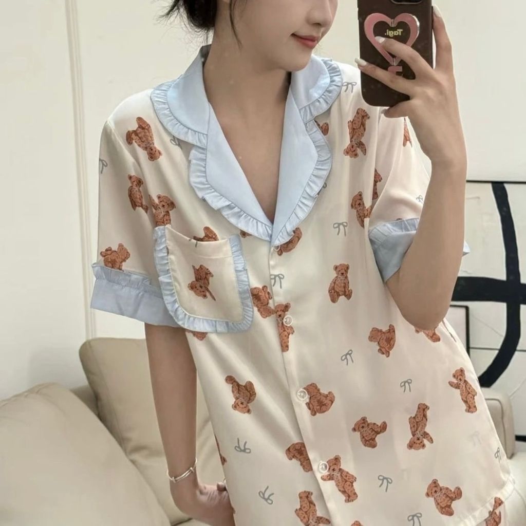 A83 泰迪熊熊 法式冰絲睡衣套裝